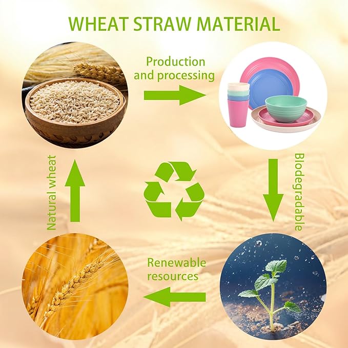 - Durable and Healthy:The Wheat Straw Dinnerware set is made of high-quality wheat straw fiber and food grade safe materials,ensuring durability and long-lasting use,without worrying about harmful chemicals seeping into your food.