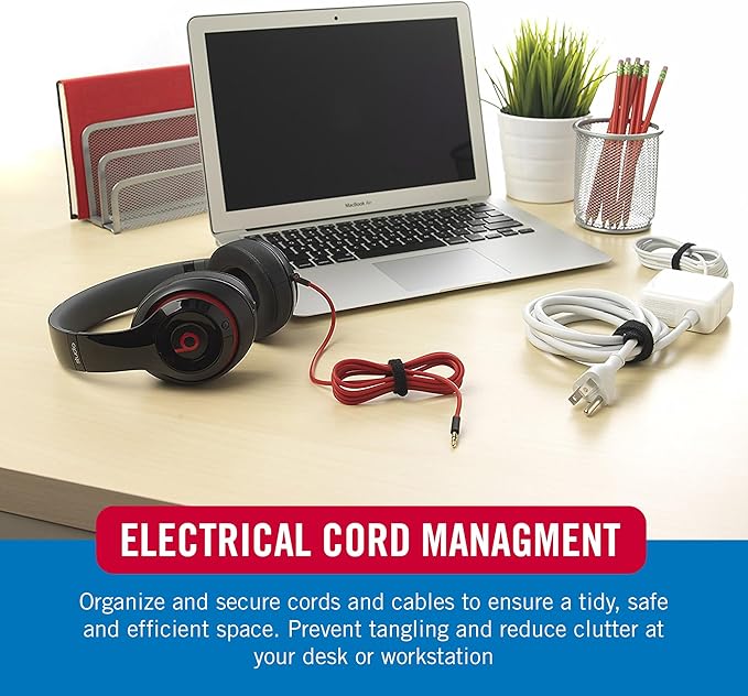 - ELECTRICAL CORD MANAGEMENT: Organize and secure cords and cables to ensure a tidy, safe and efficient space. Prevent tangling and reduce clutter at your desk or workstation