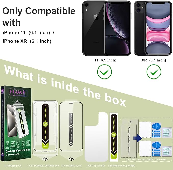 - Bubble-Free,Case-Friendly Fit: Designed for perfect fit and full case compatibility,this iPhone 11/XR screen protector offers sensitive touch response and stays bubble-free.Enjoy long-lasting,seamless protection that works perfectly with your favorite phone case