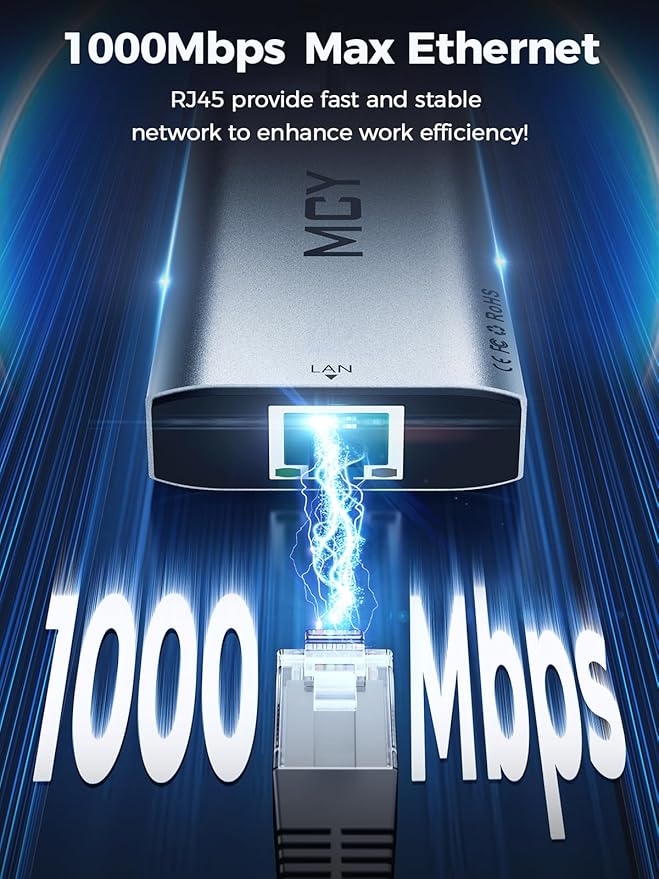 - 【100W PD Pass-Through Fast Charging】The usb laptop hub has a USB Type C 100WPD charging port, which can quickly charge your laptop/tablet/phone when you use other ports. When the thunderbolt usb c hub is fully loaded, there is no need to worry about the laptop losing power. And when you work or play, you can connect to the 1000Mbps Ethernet port of the powered usb c to ethernet adapter, providing you with a stable and fast network, ensuring efficient and fast work and ultra fast internet experience.