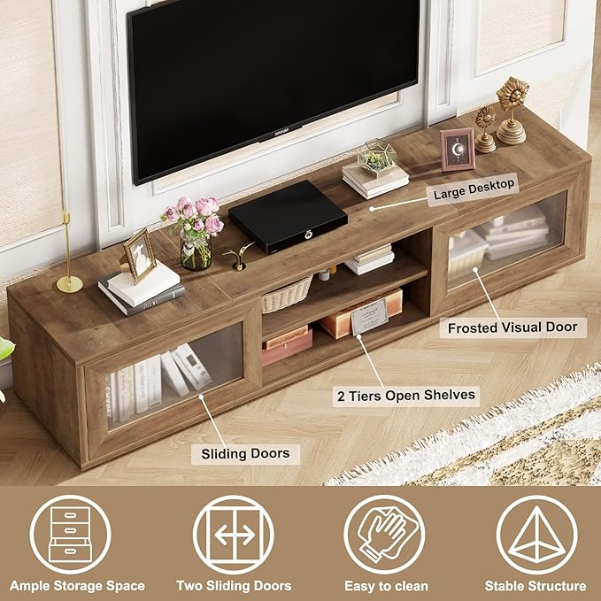 HSH 70 inch TV Stand for 75" TV,Entertainment Center for Living Room Under TV Storage Cabinet,Modern TV Media Console Wood with Sliding Doors for Bedroom,Rustic Oak