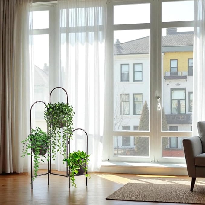 - [TOOL-FREE ASSEMBLY]: Our metal plant stands indoor require no screws or tools—just unfold and secure the swivel joints. Includes clear instructions; improper setup may affect stability. Enjoy hassle-free setup for your plant stands indoor tall metal display!