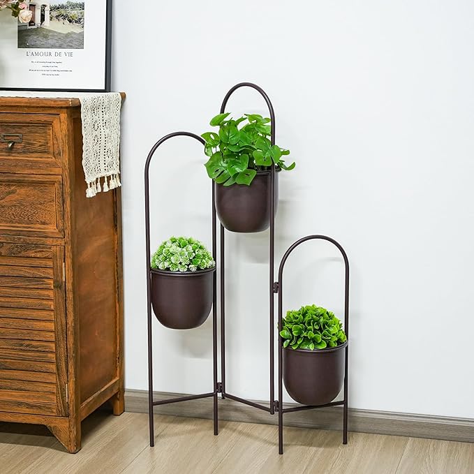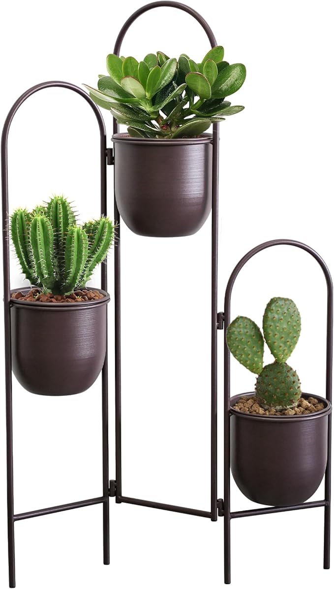 - [STURDY METAL PLANT STAND]: Our premium plant pot stand is crafted from durable metal with a sleek brown finish, ensuring long-lasting strength and corrosion resistance. The 3 tier plant stand features a stable, folding design for balance without tipping, perfect for indoor plant stand use in any room.