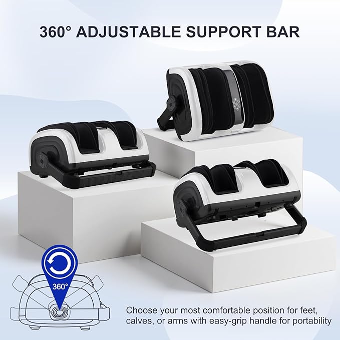 - 【360°Adjustable Handle】The foot and calf massager with heat has a 360° adjustable handle which can provide a deep kneading shiatsu massage at the optimum comfort angle, letting you massage your feet, calves, and arms while you are seated, or lying on your back.You can enjoy a massage session at home, in the office, or anywhere you want.