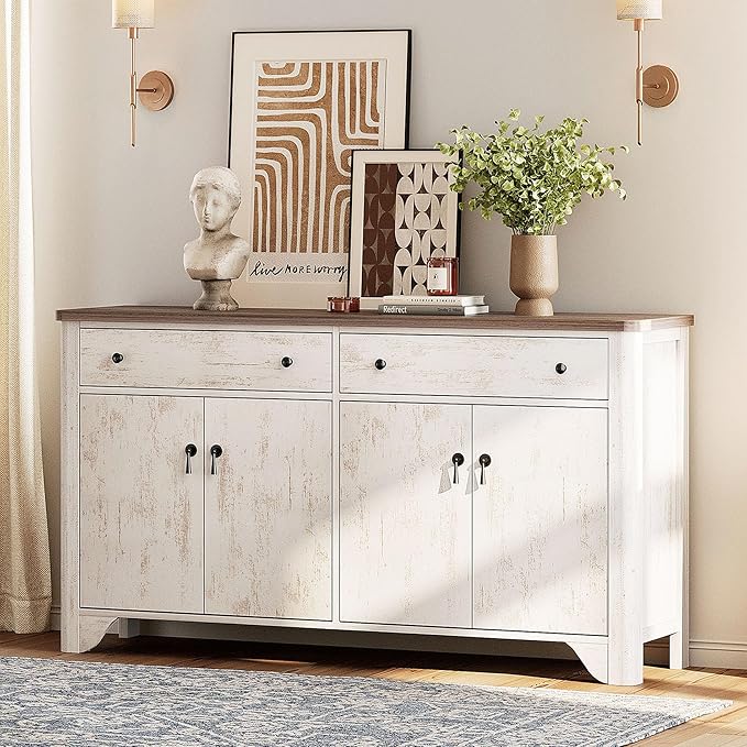 - Ideal for TVs up to 65 Inches: With overall dimensions of 15.7" D x 59.1" W x 31.5" H, this TV console table is suitable for most flat-screen TVs up to 65 inches. It's a perfect TV stand for 55 inch TV, 60 inch, or even a 65 inch TV. The wide top surface also accommodates a soundbar or decorative items, making it an excellent choice for a dresser TV stand for bedroom or wood TV stand for living room.