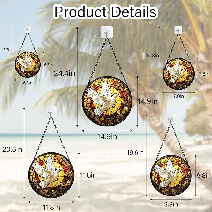 - Versatile and Easy to Hang: This stained glass window panel is a breeze to install with its included metal chain. Beautiful patterns are the perfect addition to your windows, doors, and home.