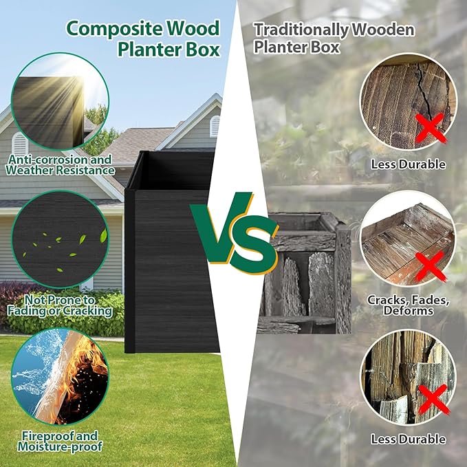 - Durable & Weatherproof Eco-friendly composite wood + rust-proof steel corners. UV-resistant, fade-proof, and built to withstand all seasons.
