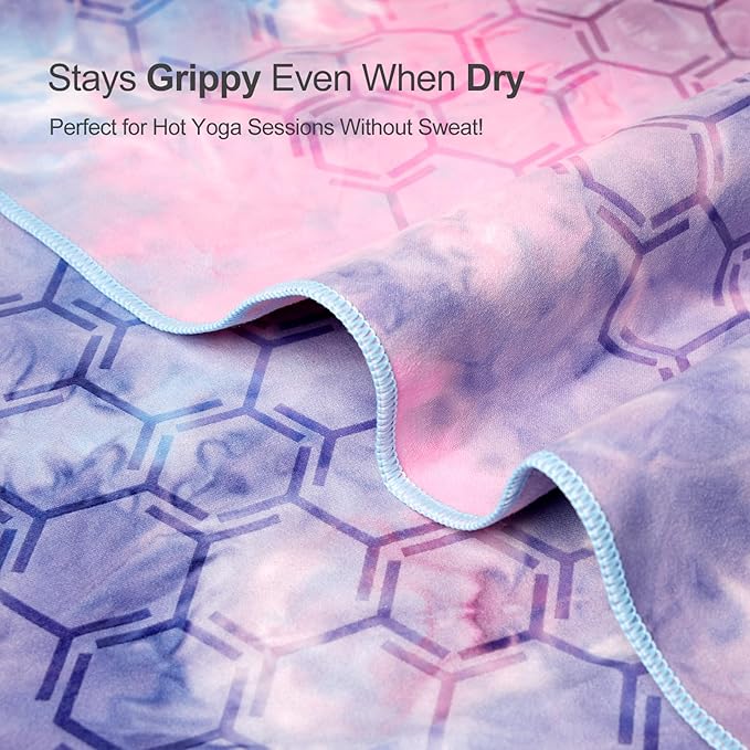 - NON-SLIP & SKID-LESS: The yoga towel, with its honeycomb design, ensures a slip-free practice. Made of soft microfiber, it features a double-sided embedded silicone pattern that grips the mat or floor, providing a smooth, non-slip surface without bumps. This textured surface maintains traction even when wet, allowing you to focus on your practice.