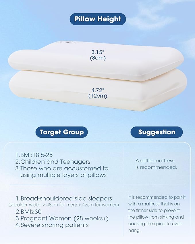 - 【Soft and Breathable, Refreshing Sleep Experience】The surface of the sleeping pillow is made of soft and breathable fabric, keeping you fresh all night long. Lined with high-density memory foam, it provides gentle, cloud-like support to help you enjoy unrivaled comfort every night.