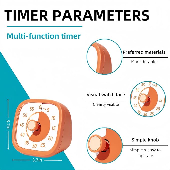 - 【Master Time Management with Ease】: Equipped with a 60-minute visual display, this timer for classroom is an ideal companion for both children and adults. It fosters improved time management and boosts productivity during various activities, making it a true "Time Management Master" for all.