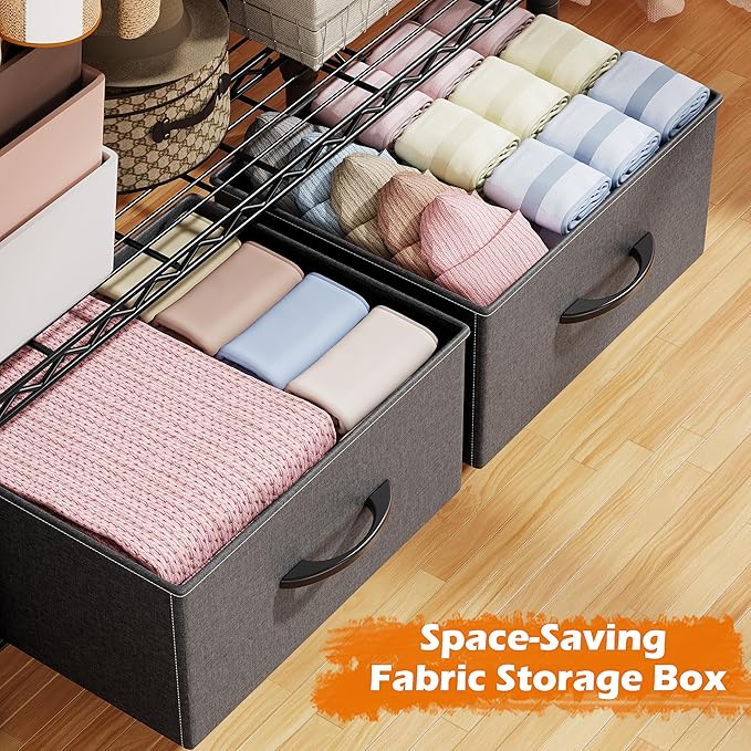 - Garment Rack with 2 Fabric Drawers:The drawers are equipped with easy-pull handles for smooth operation; designed for organizing underwear, socks, wallets and other small personal items, hidden storage and visual refreshment. Easily integrated into the closet, making storage more efficient and space more organized.