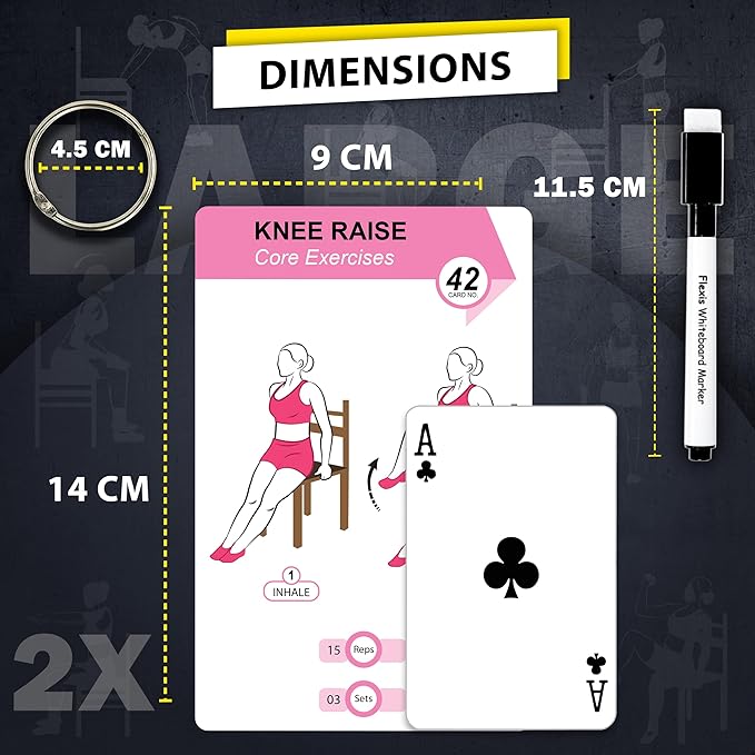 Chair Yoga Workout Cards – 58 Seated Exercise Cards for Strength, Flexibility & Weight Loss | Includes Postures, Instructions & Breathing Tips | Free Ring & Dry-Erase Marker to Customize 28 Day Chair Workout Chart