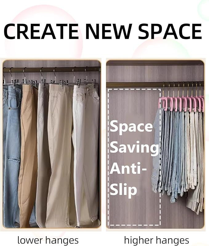 - Space-saving Design: Our pants hangers with 10pcs clothe hanger connector hooks are designed to maximize closet space and keep it organized. They can hold multiple pairs of pants, saving valuable closet space.