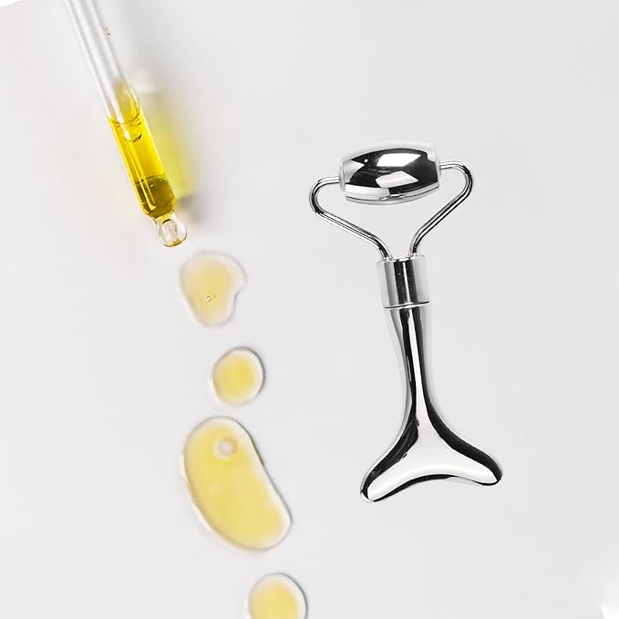 Stainless Steel Face Roller,2-in-1 Facial Roller and Guasha Tool for Face,Cooling Metal Roller for Redness Reducing,Skin Care