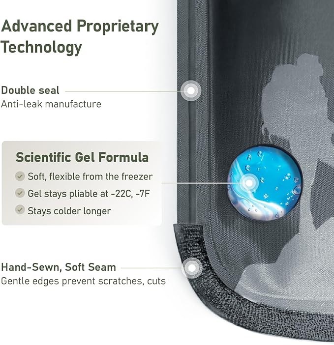 - COLDER FOR LONGER - Our unique proprietary gel does not freeze solid like water or other gel packs. Staying flexible at sub-zero temperatures, our ice packs stay pliable and with more gel than other packs, are colder for up to twice as long, providing better pain relief for muscles, joints, and tendons.