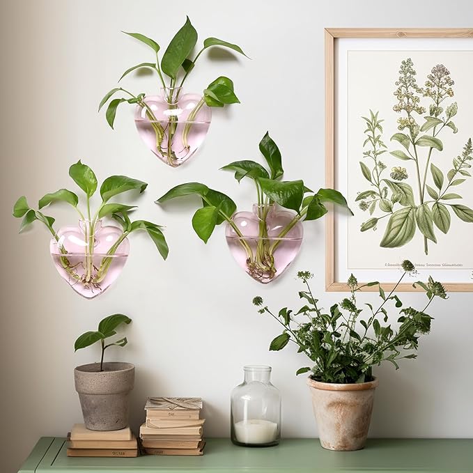 - 【Package Includes】 3 glass plant containers and 4 nail hooks. Note: Plants and decorations are not included!