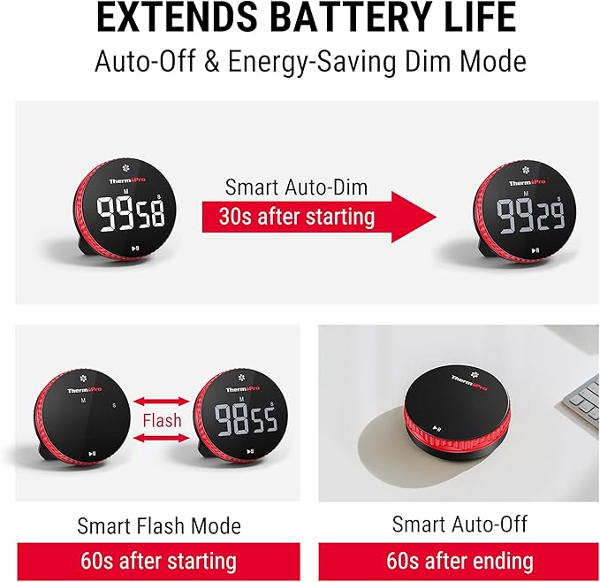 - 【Smart Alarm & Auto-Dimming for Power-Saving】This countdown timer features 3 adjustable volume settings (High, Low, Mute) to suit any environment from a noisy kitchen to a quiet library. Auto-Dimming mode and Auto Shut-Off after 60 seconds of inactivity significantly extend battery life.