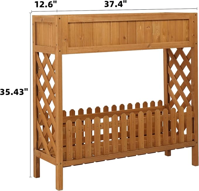 - 【Side Fences】: The lovely side fences not only add a decorative touch to the planter but also act as a safeguard, preventing tools and supplies on the storage shelf from accidentally falling.Combining aesthetic appeal and protective function.