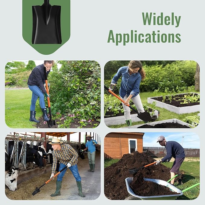 - Long Lasting & Quick Digging: Well-made digging shovel has a sharp blade,this sharpened steel blade penetrates tough soil with ease and stays sharp through heavy use, providing excellent durability for lasting value and efficiency for your digging.