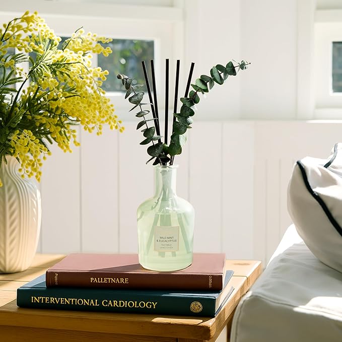 - Complete set: A bottle of 6.76 oz high quality essential oil blend, 8 reed sticks, 2 dried eucalyptus branches (please note that slight leaf detachment may occur during packaging or transit, which is normal), all beautifully presented in a gift-ready box