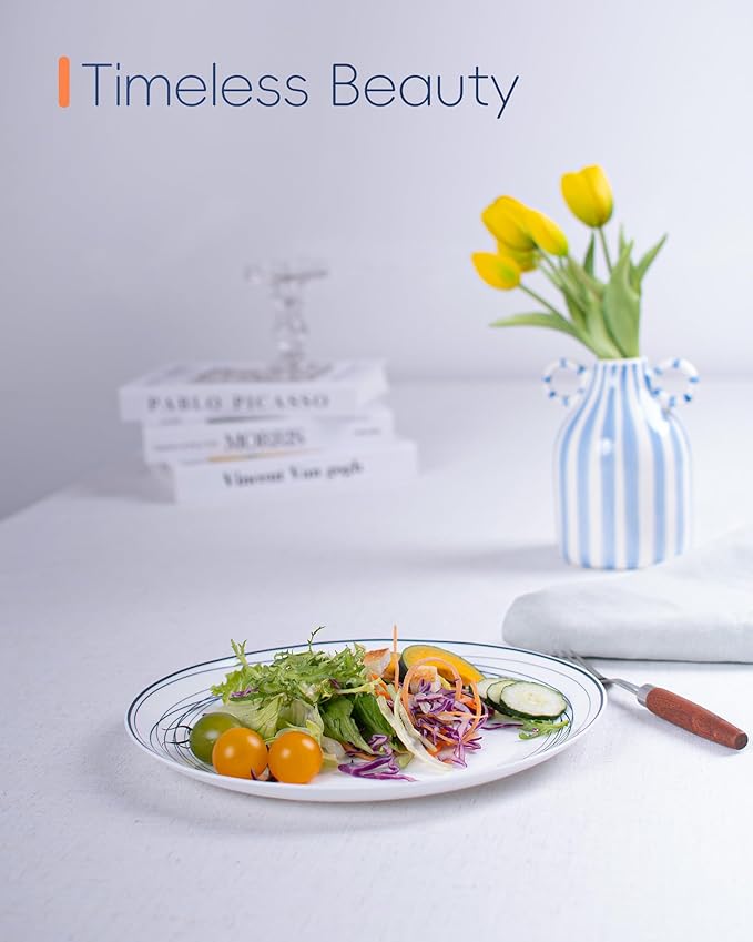 - 10.5 Inch Plate Set of 6: Elegant minimalism for everyday sophistication; These dinner plates are suitable for serving steak, pasta, pizza, seafood and other main course or fruit, perfect for daily use or party purpose