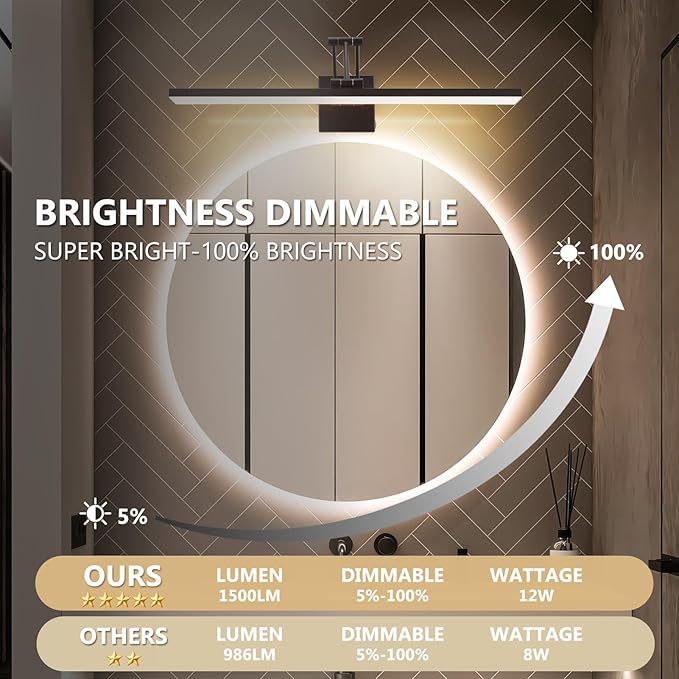 - 2️⃣ 【Pro Artwork Light with 3CCT Lighting】95 CRI LEDs + 270° rotating head deliver true-color illumination for oil paintings/antique mirrors. Switch between 3000K-6000K to match daylight/mood lighting, 10%-100% dimming adapts to art lights for wall exhibitions or cozy nights.