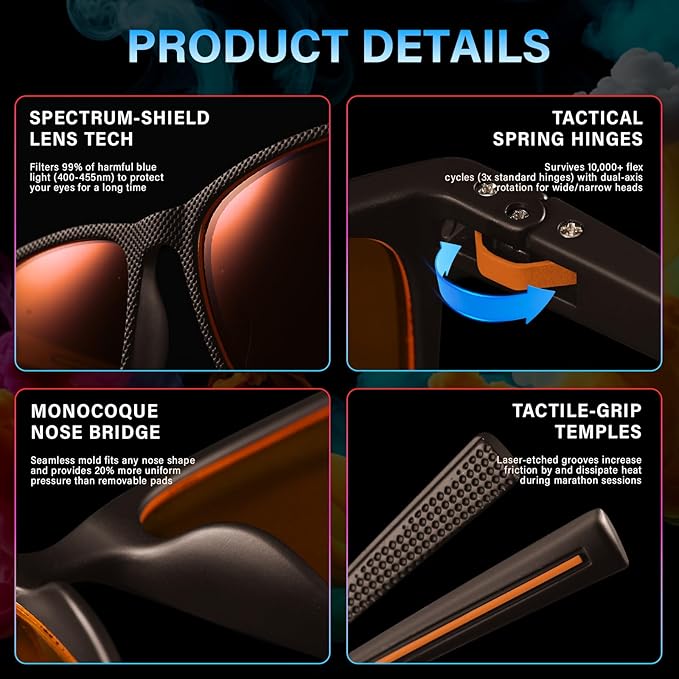 - Perfect for Extended Screen Time:Ideal for those long hours spent in front of computers, TVs, or engaged in gaming, they effectively reduce eye strain and fatigue.