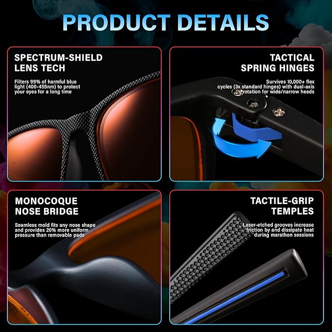 - Perfect for Extended Screen Time:Ideal for those long hours spent in front of computers, TVs, or engaged in gaming, they effectively reduce eye strain and fatigue.