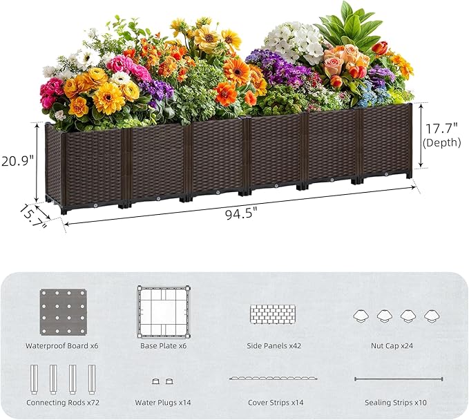 TooCust Extra Deep Rectangular Garden Planter Box - Self Watering Raised Bed 95" L x 16" W x 21" H for Outdoor Plants, Large Elevated Planters for Vegetables, Flowers, Herbs