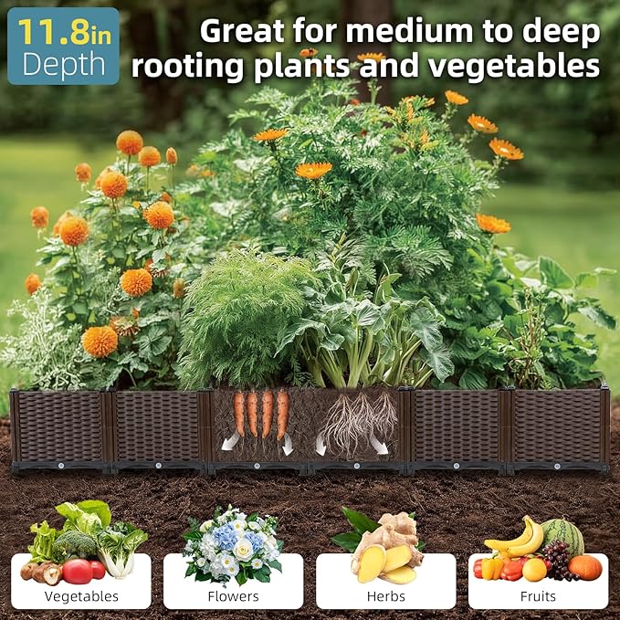 - Reinforced PP Construction - Holds 150+ lbs of soil without sagging.