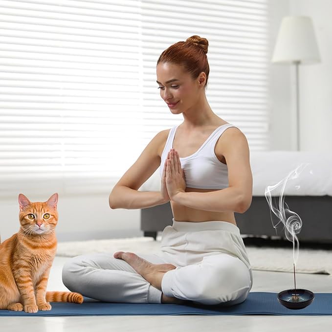 - 🔯 Ash Catch & Easy to Clean: Due to the width and depth of the incense burner holder & brass stand, ashes will not be dispersed, and it is easy to clean up. 9 Holes design allows it to hold a variety of incense like Indian incense, cone incense, Hem incense, and Japanese incense. Please try to ensure the incense stick is vertical to avoid the ash falling outside. We suggest placing it in a place without wind.