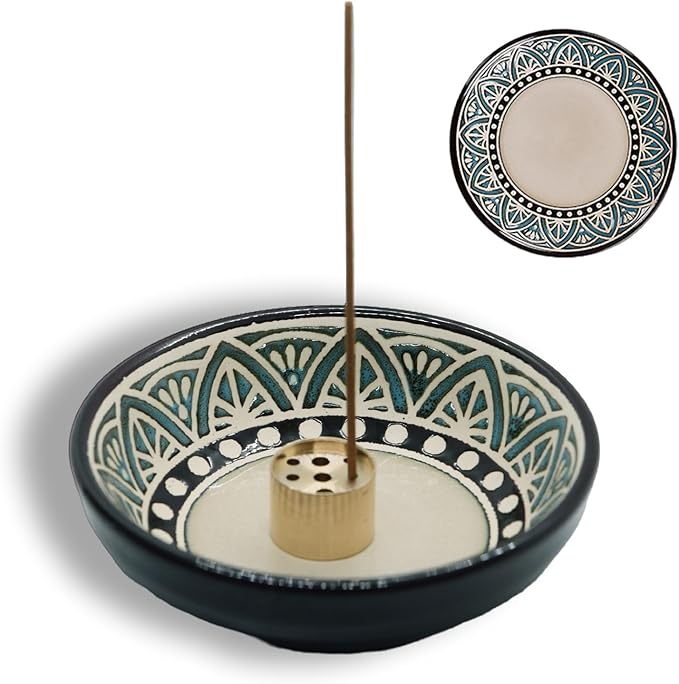 - 🔯 Handmade Excellence: Our ceramic incense holder is carefully crafted from clay by artisans. It is handcrafted, drawn, double-fired, and glazed to ensure durability and excellent quality. Each one is handmade, and there may be slight color differences.