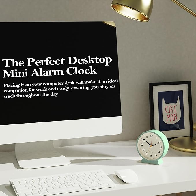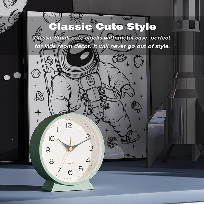 AYRELY® 4.5" Analog Alarm Clock,Small Retro Desk Clock Battery Operated,Slient Metal Table Clock with Light for Living Room Decor,Bedroom,Bedside,Shelf (Green)
