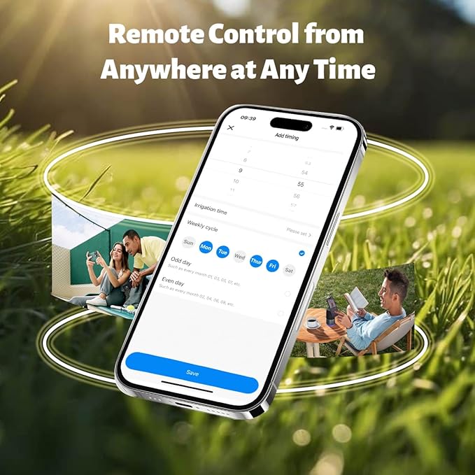 - Garden Watering Solution: When you're away, our garden hose timer provides reliable automatic watering for your plants. Just set your watering schedule in the app, Rest easy knowing your plants will get the water they need. It's perfect for lawns, yards, patio and any area that requires irrigation.