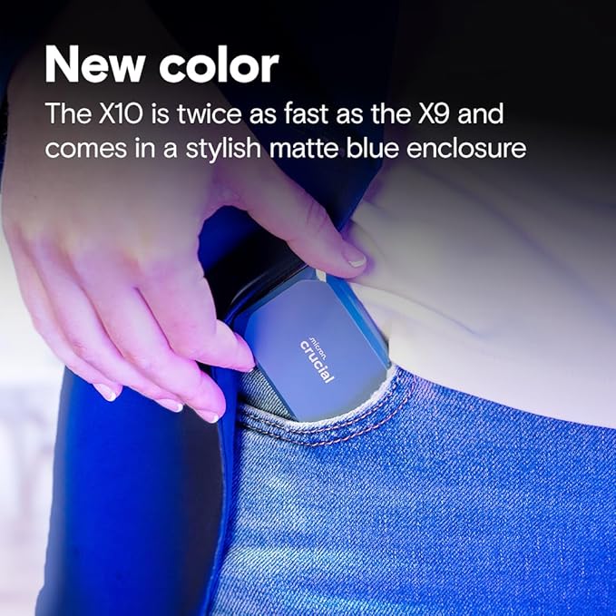 Crucial X10 2TB Portable SSD, Up to 2,100MB/s, USB 3.2 USB-C, External Solid State Drive, Compatible with Windows, Mac & Android, Durable Storage for Games, Photos & Files, Blue - CT2000X10SSD9-02