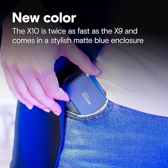 Crucial X10 4TB Portable SSD, Up to 2,100MB/s, USB 3.2 USB-C, External Solid State Drive, Compatible with Windows, Mac & Android, Durable Storage for Games, Photos & Files, Blue - CT4000X10SSD9-02
