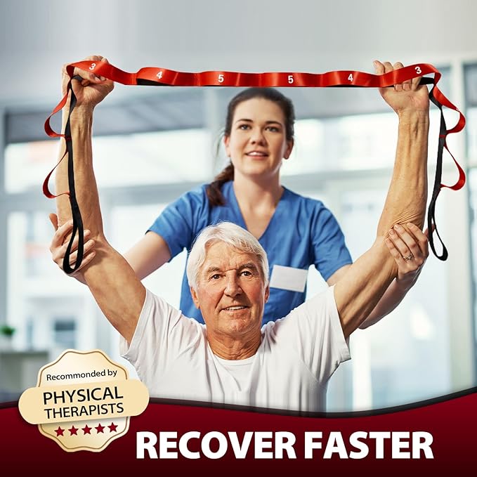 - ENHANCE YOUR WELL-BEING – Achieve deeper stretches safely and effortlessly with our premium stretch strap. Featuring adjustable loops and ultra-comfortable neoprene handles, this versatile tool supports proper posture during yoga or flexibility training while protecting your hands and feet. Designed to refine your stretching techniques and amplify your yoga practice, it helps revitalize both your body's agility and youthful appearance