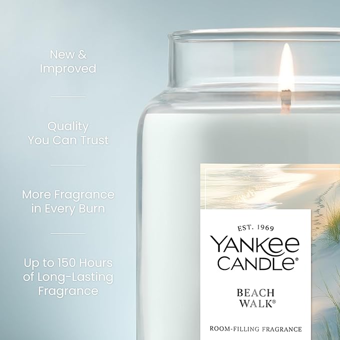 Yankee Candle Large Jar Scented Candle with up to 150 Hour Burn Time, Premium Plant Wax Blend for Consistent Burn, 22 oz Jar Candle with Room Filling Fragrance, Beach Walk