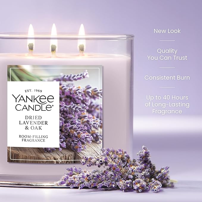 Yankee Candle 3 Wick Candle Jar, Scented Candle with up to 40 Hours of Burn Time, Premium Plant Wax Blend for Consistent Long Lasting Scent from First to Last Burn, Dried Lavender & Oak