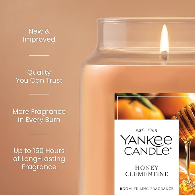 Yankee Candle Large Jar Scented Candle with up to 150 Hour Burn Time, Premium Plant Wax Blend for Consistent Burn, 22 oz Jar Candle with Room Filling Fragrance, Honey Clementine