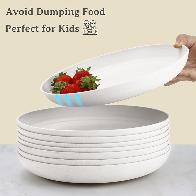Wheat Straw Plates - 9 Inch Unbreakable Dinner Plates Set of 8 - Dishwasher & Microwave Safe Plastic Plates Reusable for Kitchen and Camping (white)