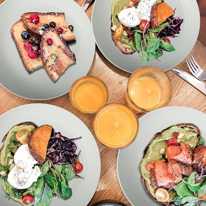 Wheat Straw Plates - 10 Inch Unbreakable Dinner Plates Set of 8 - Dishwasher & Microwave Safe Plastic Plates Reusable for Kitchen and Camping (Light Grey)