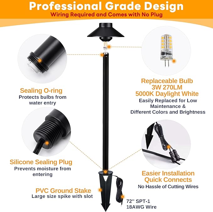 - ๐-๐๐๐ ๐๐จ๐ฐ ๐๐จ๐ฅ๐ญ๐๐ ๐ & ๐๐๐ ๐๐๐๐๐ญ๐ฒ: Not plug-and-play. Requires wiring to a transformer (not included). ETL certified ensures electrical safety. LED bulbs help to lower electric bills. Can add more lights to your system without overloading circuits โ ideal for large garden or driveway