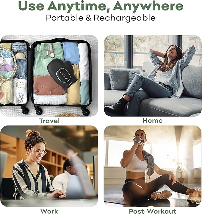 - Effortlessly Portable: With its wireless, rechargeable design and a built-in 2500mAh battery, this compact hand massager for muscles is easy to take anywhere. Perfect for home, office, or travel—it’s your ideal partner for relaxation and stress relief.