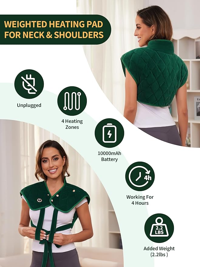 Vofuoti Portable Heating Pad for Neck and Shoulders, Cordless Heating Pad with Battery and 3 Heat Settings, Weighted Electric Heated Neck Shoulder Wrap, 16'' x 22'', 2.2lbs