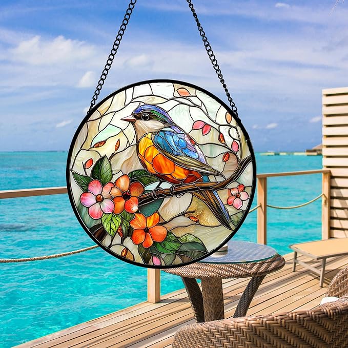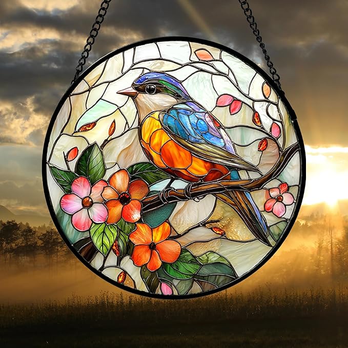 - Stained Glass Kit : This beautifully sun catcher is made of high quality diamond glass UV printed with metal frame and chain, ready to hang on windows, doors, porches, walls.This colorful glass decor perfect for home decoration or as a creative gift for neighbors.