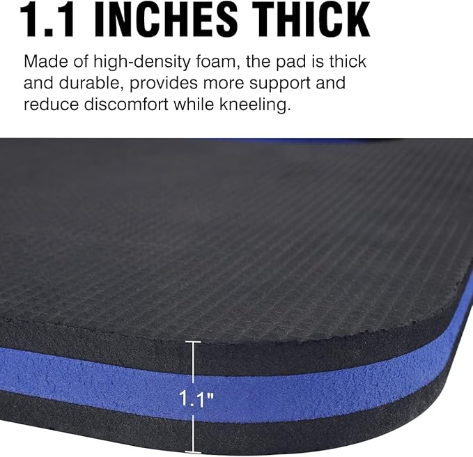 1.1" Extra Thick Garden Kneeling Pad with Handle & Tool Compartment – EVA Foam Knee Cushion Mat for Gardening, Mechanic Work, Bathing Baby, Exercise (18.7" x 12.4" x 1.1", Black & Blue)