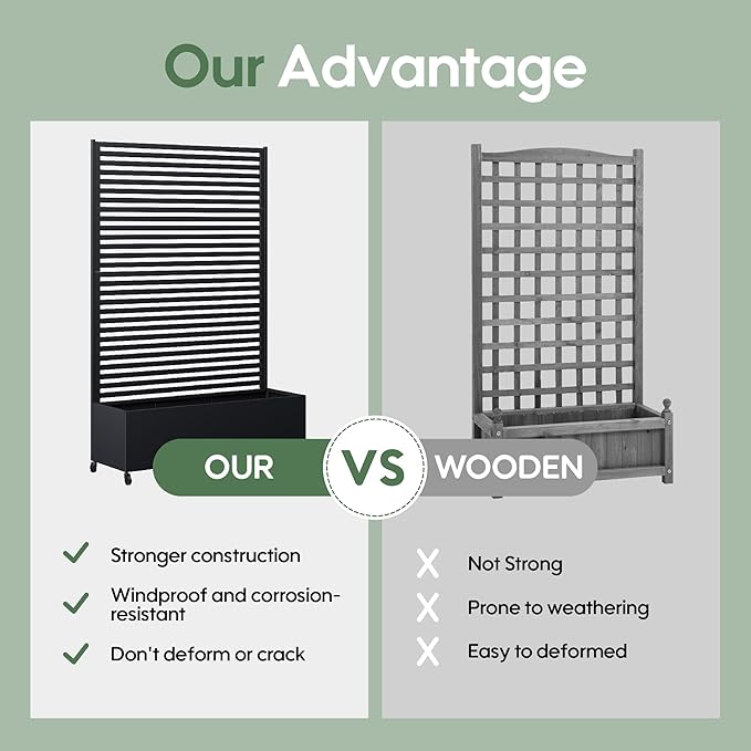 - Versatile Design--This metal planter with trellis serves triple purposes as an elevated garden bed for flowers/plants, a sturdy trellis for climbing flora, or a stylish privacy screen to enhance outdoor living spaces. Its adaptable structure makes it the ultimate gardening solution for diverse needs.