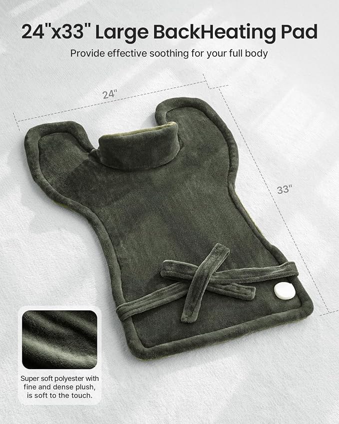 - Large Size & Pain Relief: The size of this electric heating pad is 24"x33". It can fully covering your neck and shoulders and back. In addition, it can also be flexibly applied to the arms, waist, abdomen, legs, and more. Edge weighted heating pad can provides soothing heat therapy to relieve sore muscles and muscle spasm. The heating pad for back pain relief makes a great relaxing gifts for women.