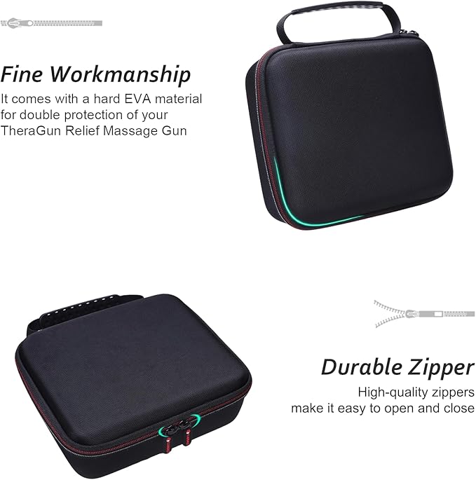 - Perfect Compatibility: Specifically crafted for theTheraGun Relief Handheld Percussion Massage Gun,this case offers a tailored fit to securely hold the heraGun Relief Gun,it ensures the Massage Gun protected from movement during storage and transportation.Outside:9.1"x7.7"x3.1"